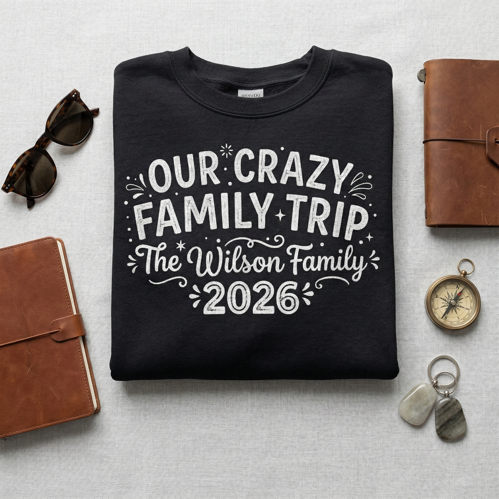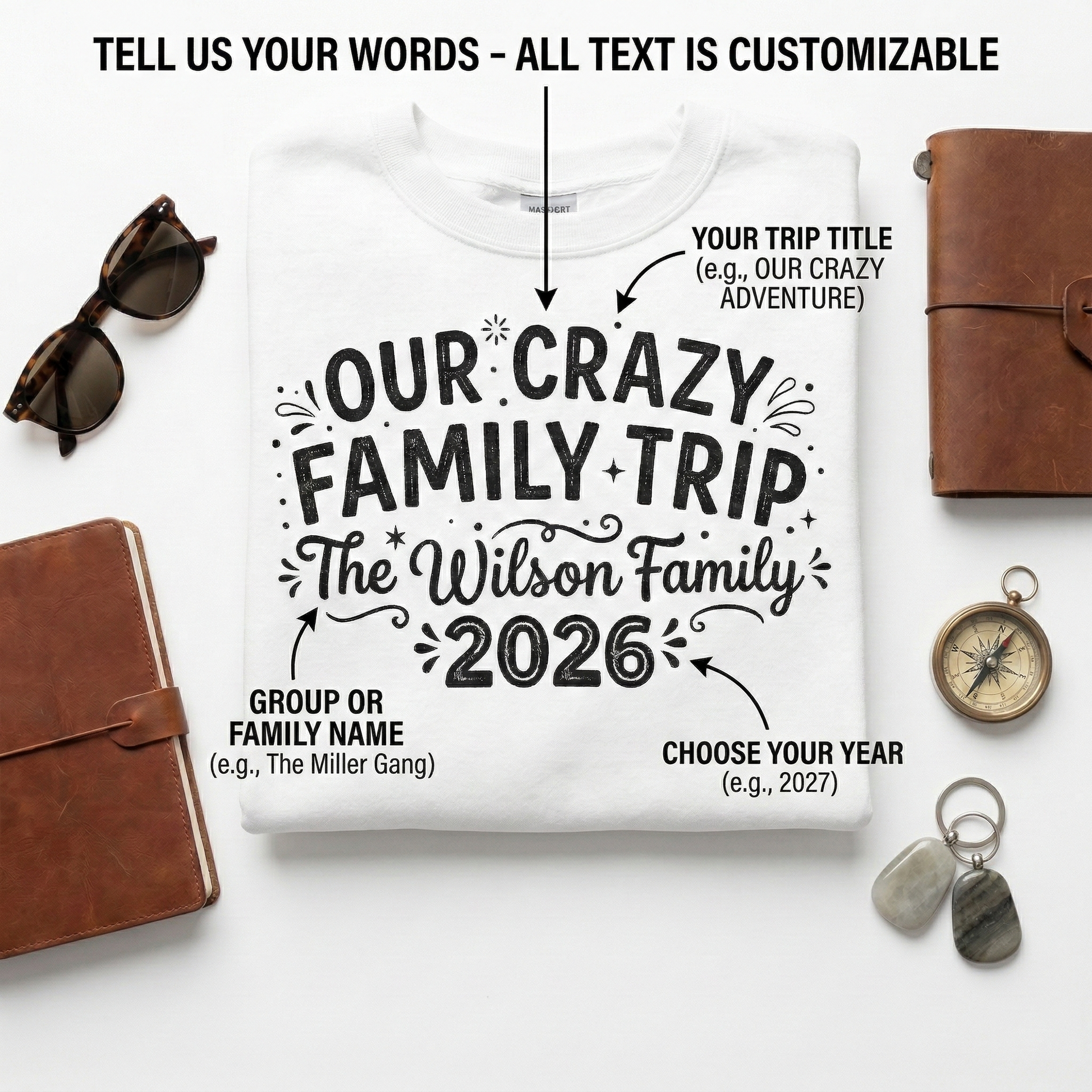 Make your next family getaway unforgettable with our fully customizable "Our Crazy Family Trip" apparel!